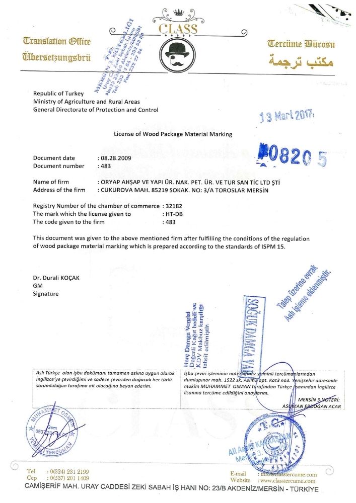 Oryap, sahip olduğu ısıl işlem fırınları ile yenilenen ISPM -15 standartlarını yerine getiren ve logolama yetkisine sahip olan bir üreticidir.